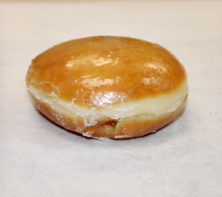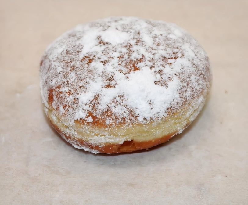 Soft, fluffy donut filled with creamy vanilla custard and coated with powdered sugar