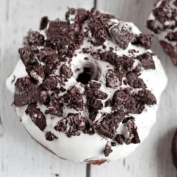 Topped with crushed oreo cookies, this donut features a rich vanilla frosting