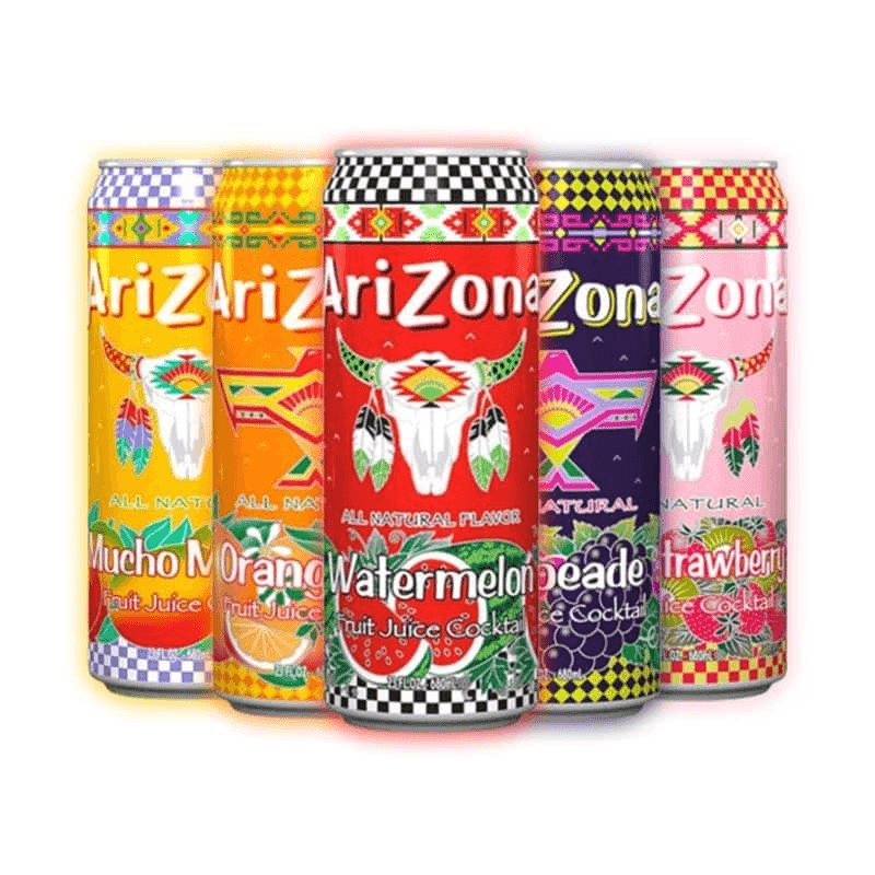 Arizona drinks in various flavors: green tea, mango, watermelon, strawberry kiwi. Refreshing bottled tea options