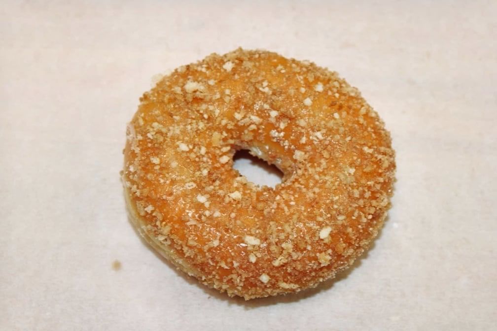 Coated with a sweet, crumbly topping, this raised donut offers a light and airy texture