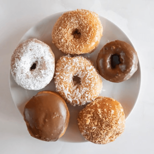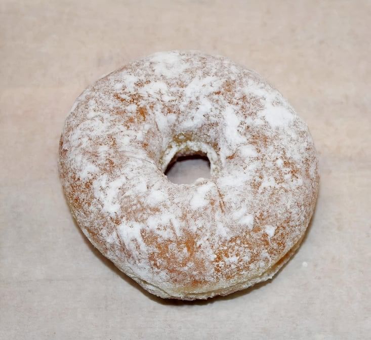 Dusted with powdered sugar, this classic raised donut offers a light and airy texture with a subtly sweet flavor