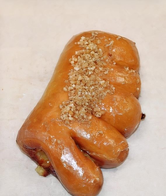Filled with apple and cinnamon, this bear claw features a sweet, glazed pastry topped with crunchy streusel