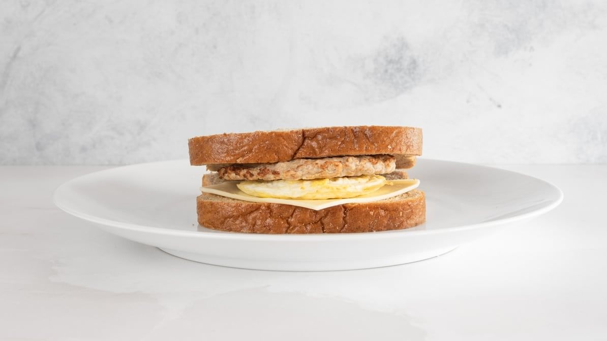 Wheat toast laden with combinations of bacon, sausage, ham, turkey, or just eggs and cheese, for a hearty breakfast choice