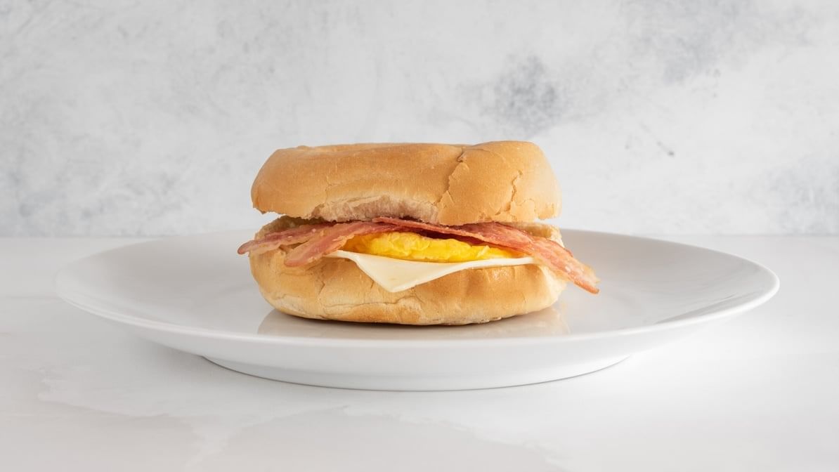 Plain bagel filled with choice of bacon, sausage, ham, turkey, or eggs and cheese. Mix meat options available