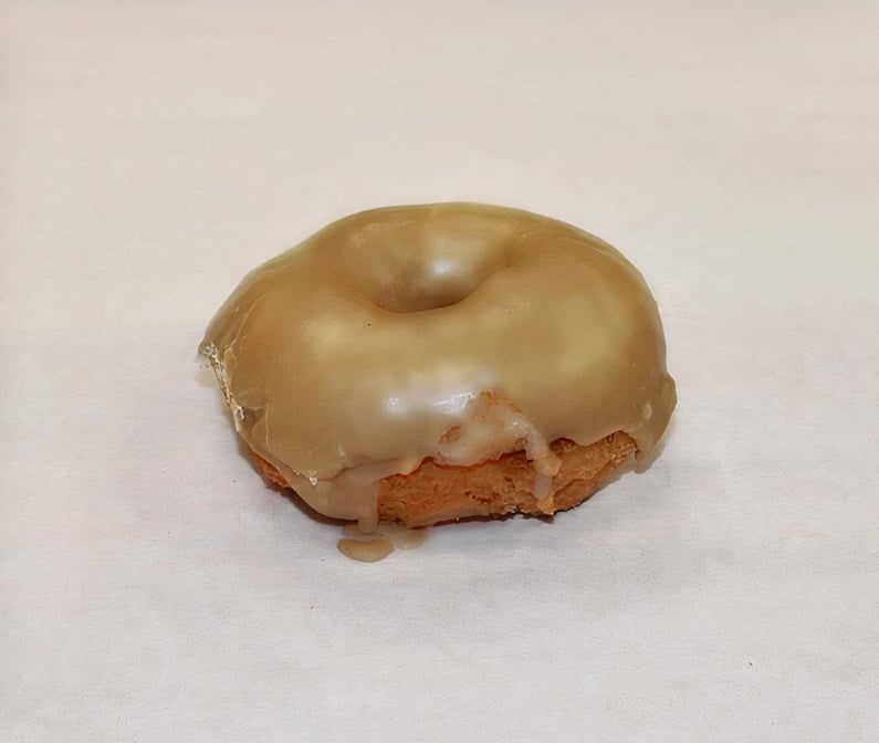 A rectangular yeast-raised donut topped with a smooth maple glaze