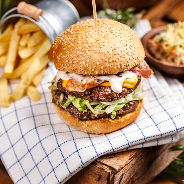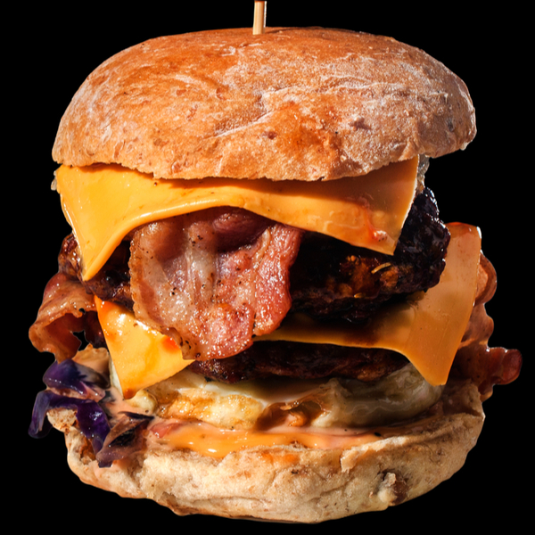 double meat burger with swiss and cheddar cheese